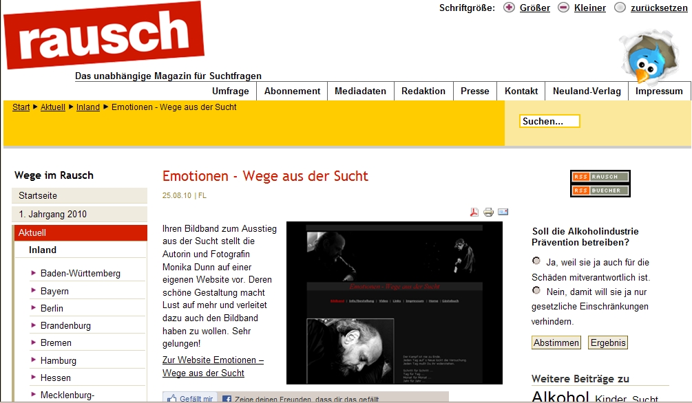 Fotoausstellung im Jahre 2009 - "Emotionen - Wege aus der Sucht"