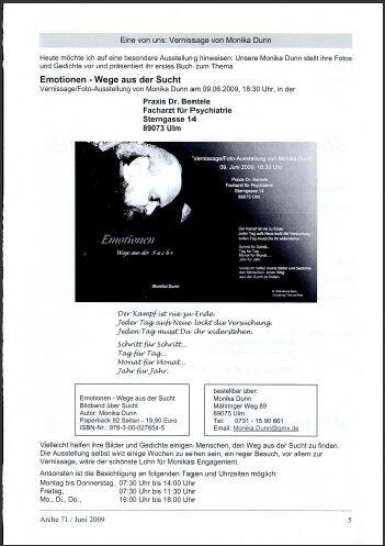 Hinweis in der Arche 71, Juni 2009, auf die